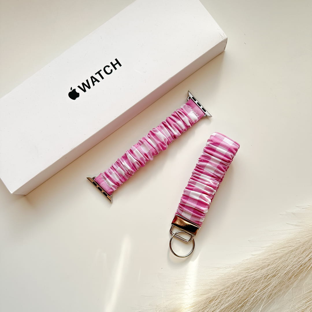 Bawełniana bransoletka opaska na smartwach Apple Watch 38 - 49 mm Różowa Kratka