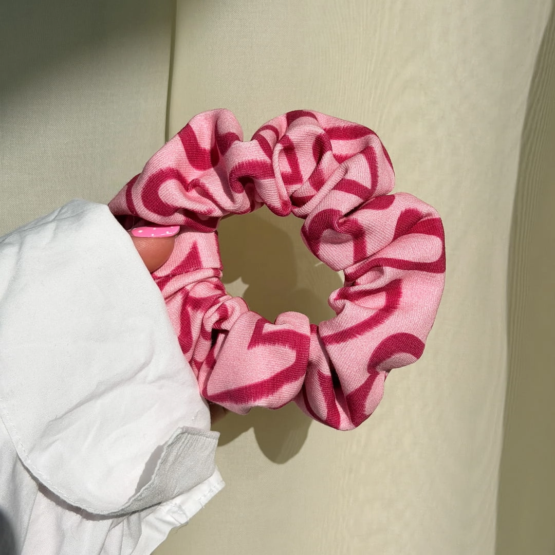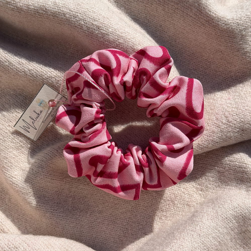 Bawełniana gumka do włosów scrunchie Różowe serca M