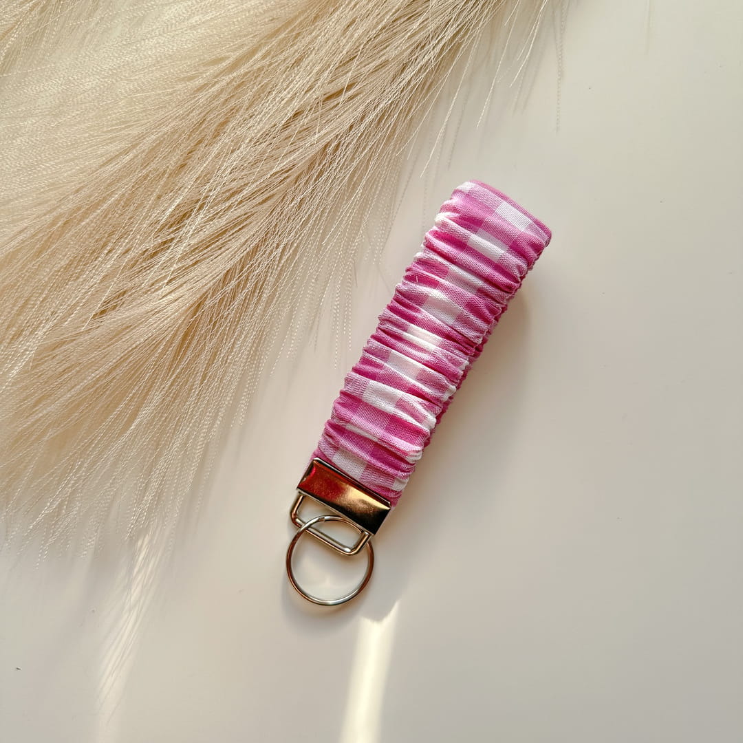 Bawełniany brelok do kluczy bransoletka Różowa kratka