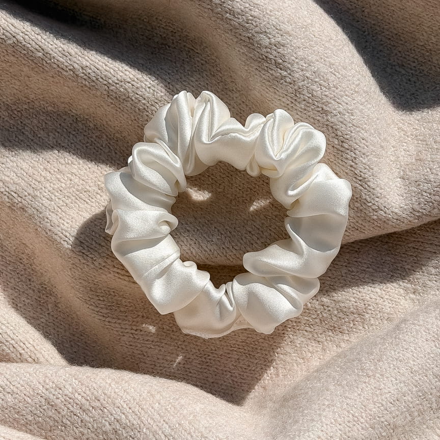 Biała jedwabna scrunchie do włosów S - 100% Jedwab