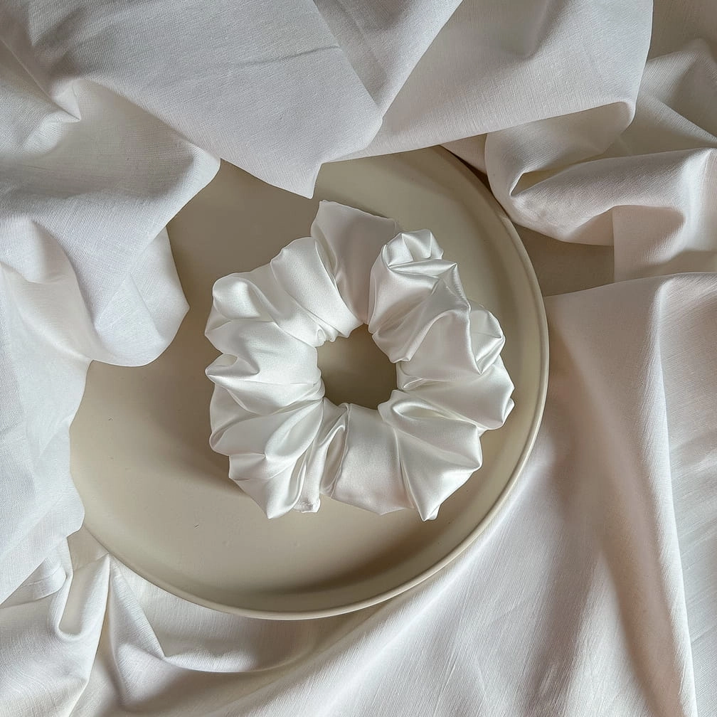 Gumka do włosów scrunchie Biała a'la jedwab Armani L