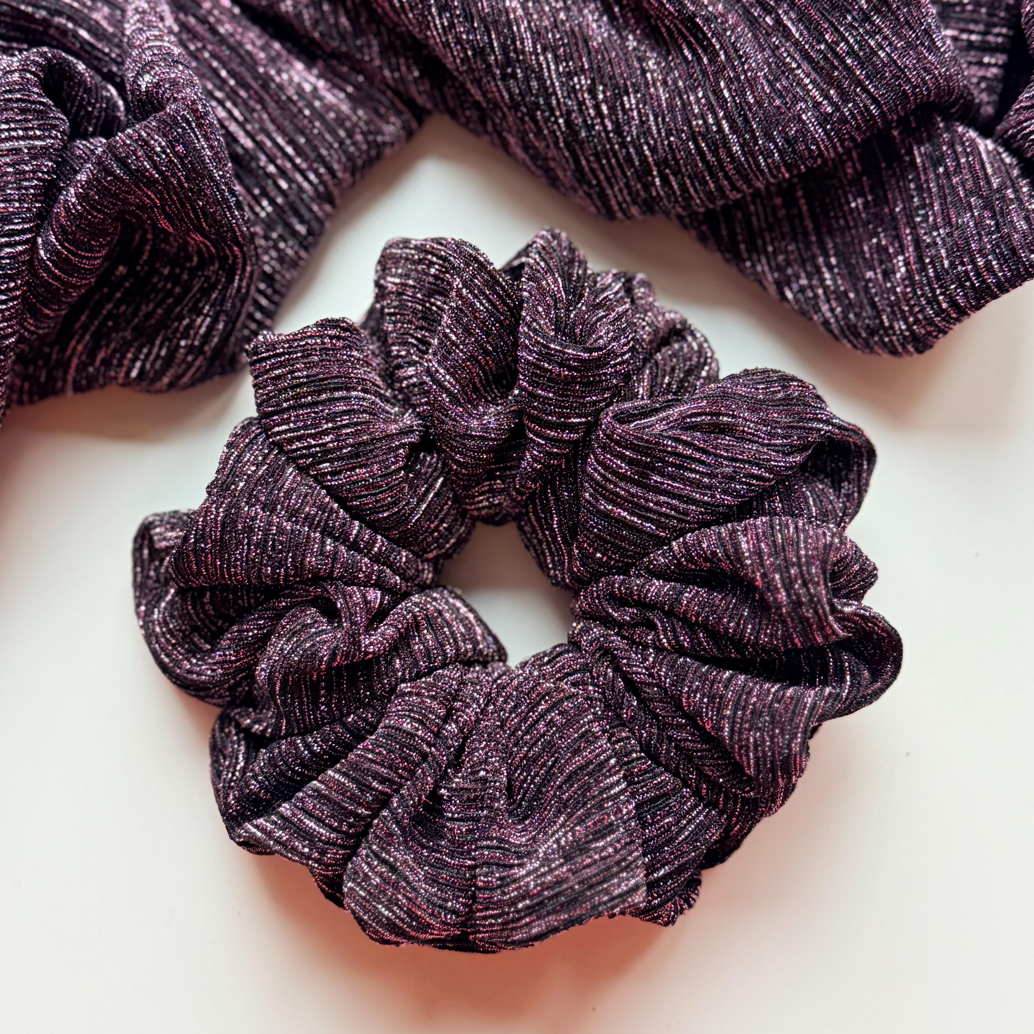 Nasze scrunchie są idealne dla osób zarówno z cienkimi, jak i gęstymi włosami, spośród 5 rozmiarów scrunchie - sugeruj się ilością użytego materiału ozdobnego (gumka użyta do scrunchie jest tej samej długości)
