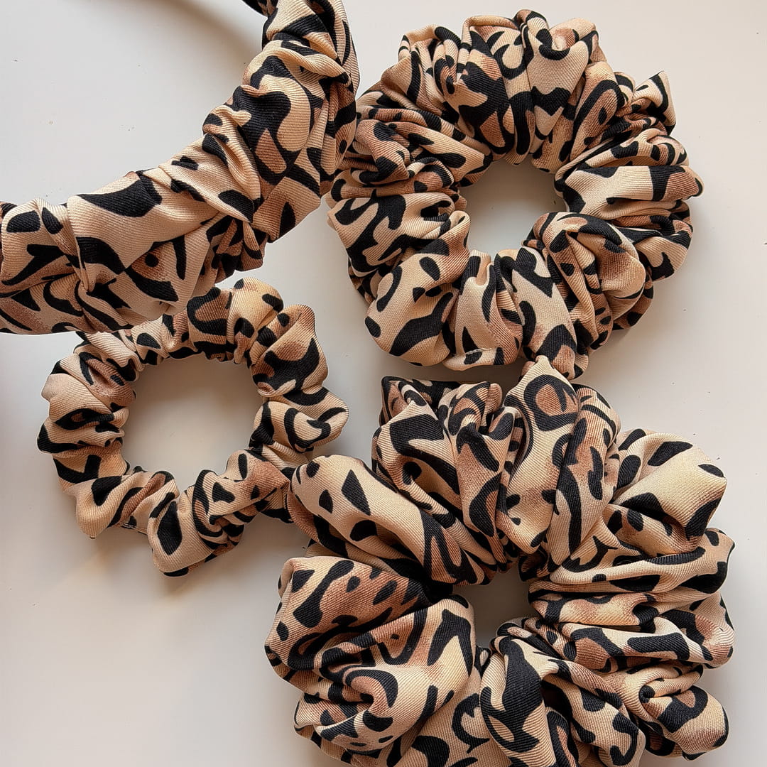 Nasze scrunchie są idealne dla osób zarówno z cienkimi, jak i gęstymi włosami, spośród 5 rozmiarów scrunchie - sugeruj się ilością użytego materiału ozdobnego (gumka użyta do scrunchie jest tej samej długości)