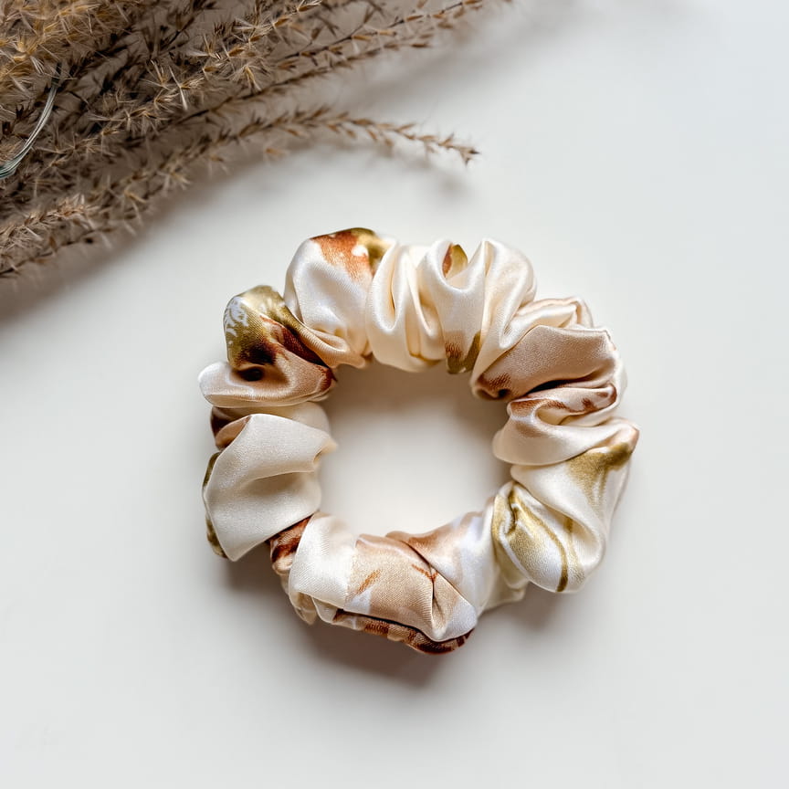 Gumka do włosów scrunchie Light Brown Flowers S