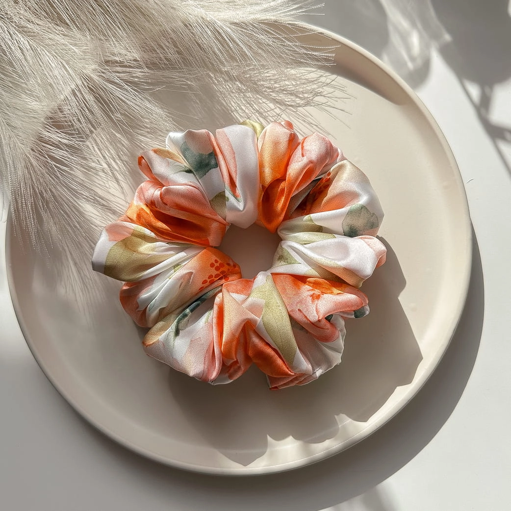Gumka do włosów scrunchie a'la jedwab Brzoskwiniowe Kwiaty L