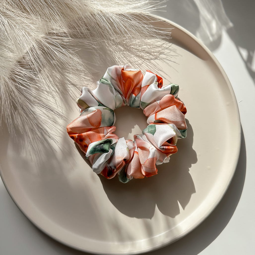 Gumka do włosów scrunchie a'la jedwab Brzoskwiniowe Kwiaty M
