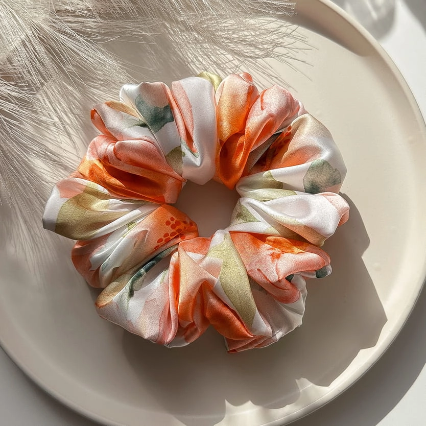 Gumka do włosów scrunchie a'la jedwab Brzoskwiniowe Kwiaty XL