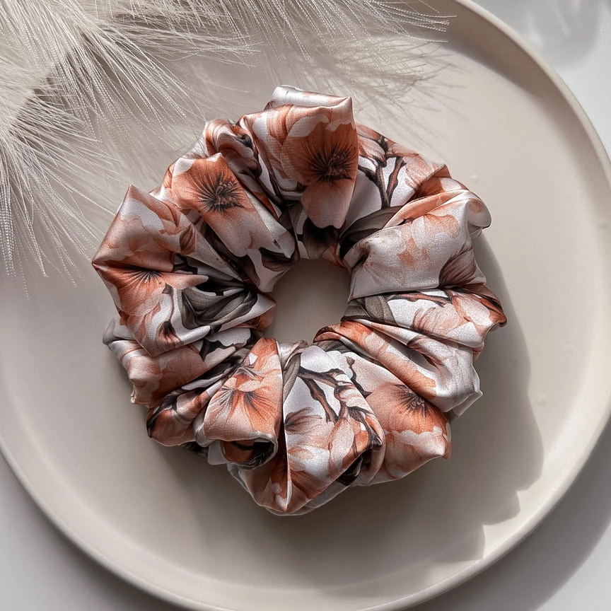 Gumka do włosów scrunchie a'la jedwab Kwiat Jabłoni XL