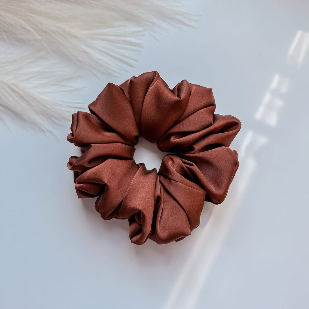 Gumka do włosów scrunchie a'la jedwab Mleczna Czekolada L