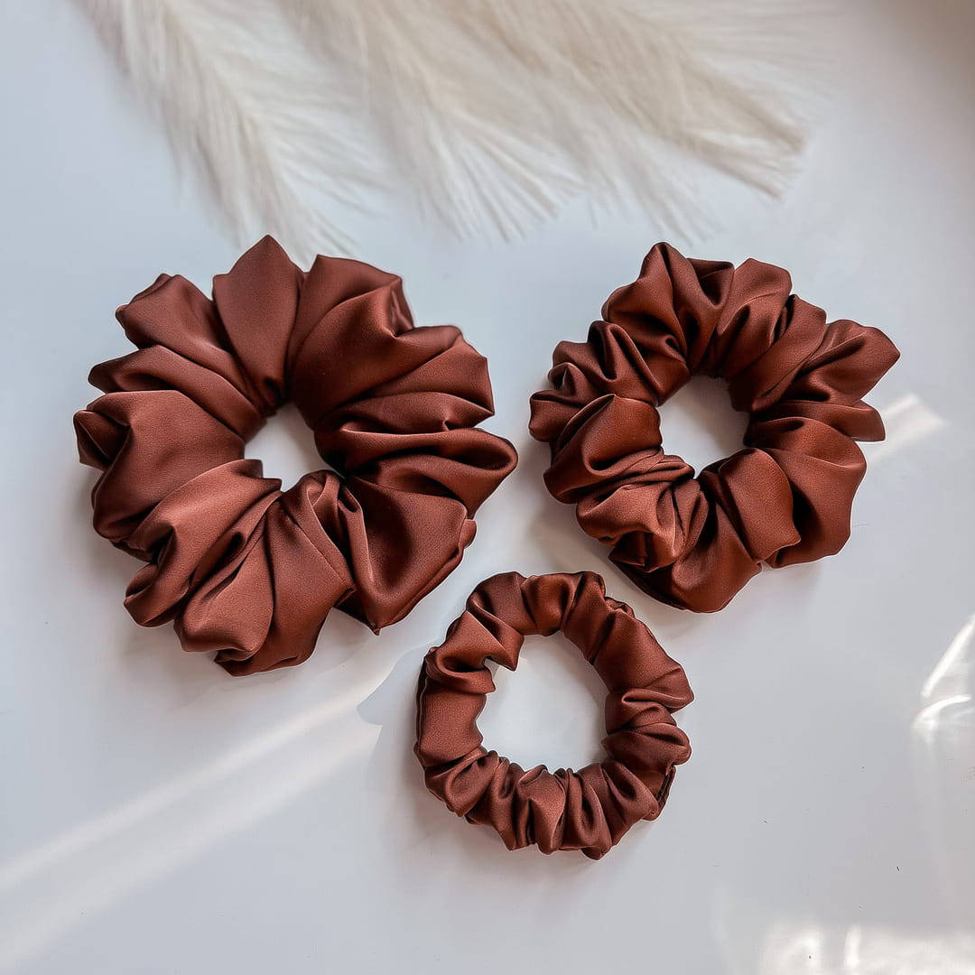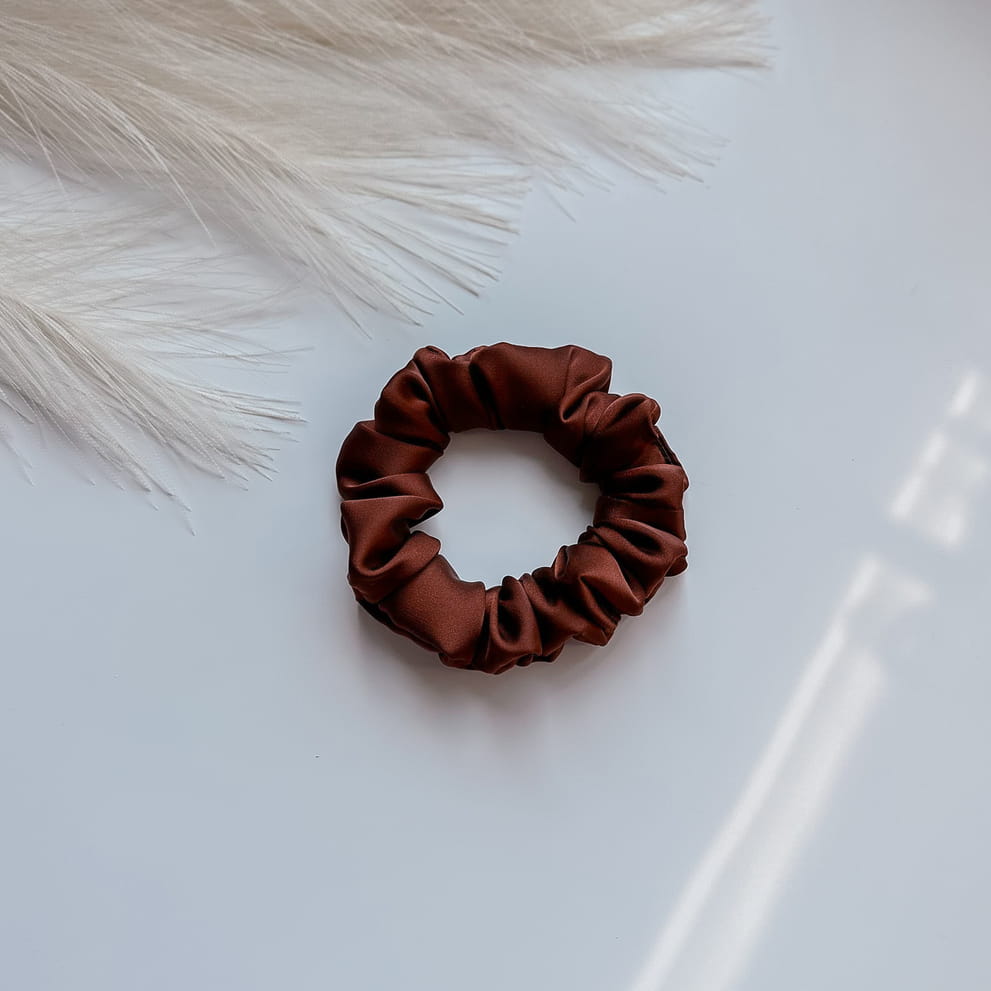 Gumka do włosów scrunchie a'la jedwab Mleczna Czekolada S