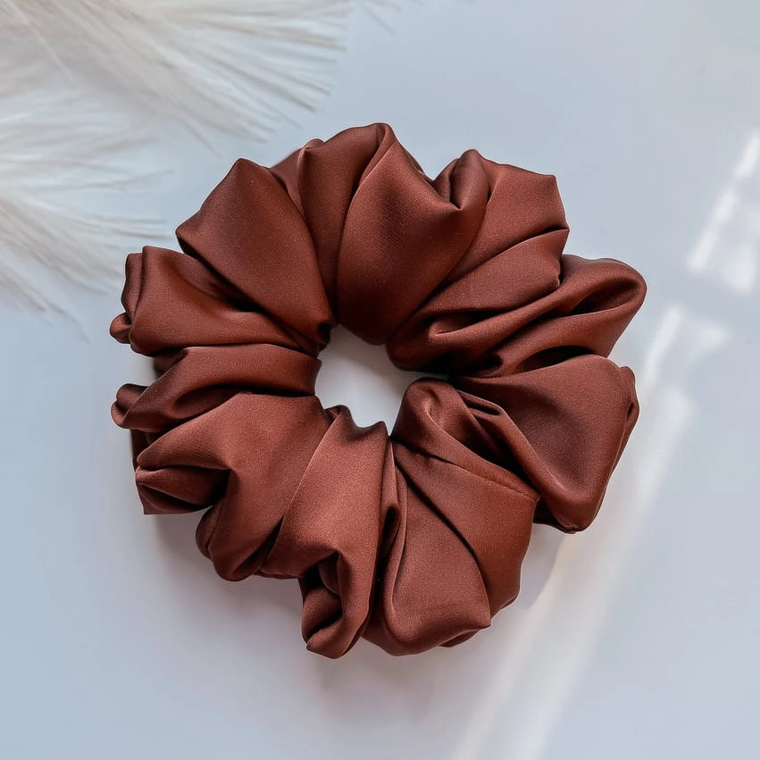 Gumka do włosów scrunchie a'la jedwab Mleczna Czekolada XL