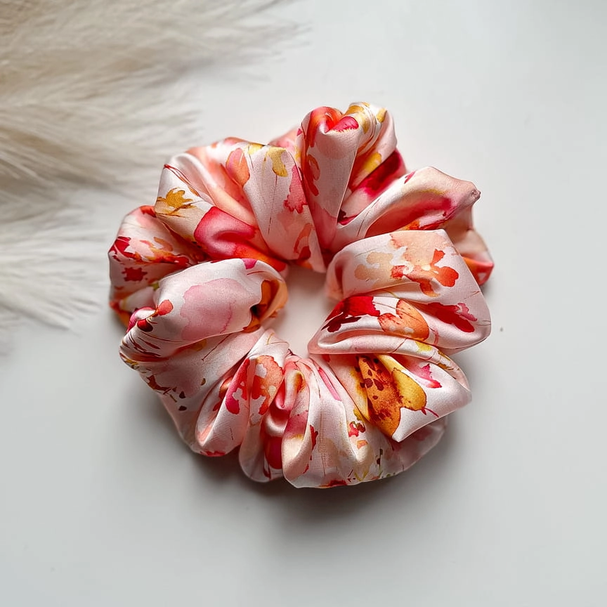 Gumka do włosów scrunchie a'la jedwab Wiosenne Kwiaty XL