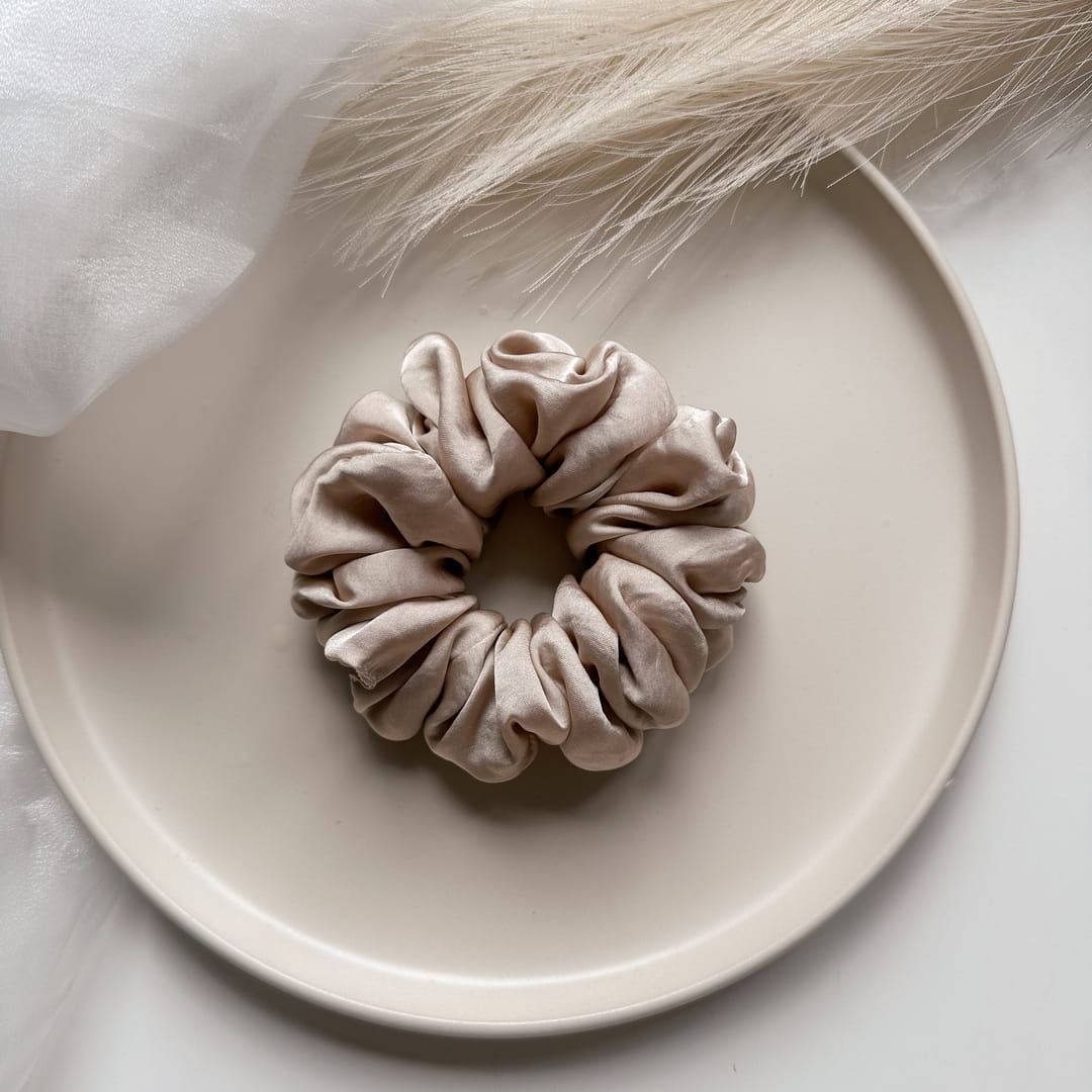Gumka do włosów scrunchie marszczona z jedwabiem Beżowa M