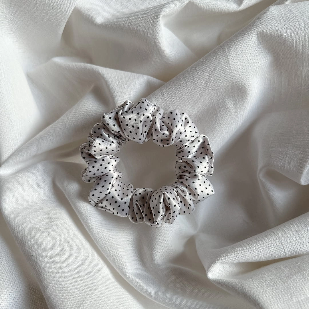 Gumka do włosów scrunchie satynowa Biała Kropki S