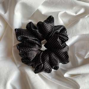 Gumka do włosów scrunchie satynowa Czarna Kropki L