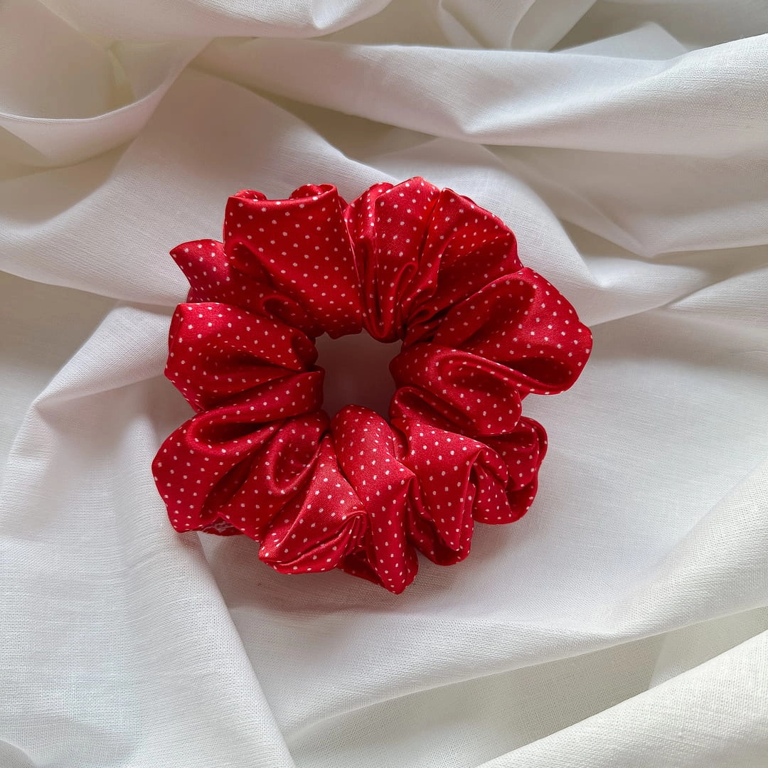Gumka do włosów scrunchie satynowa Mini Kropki Czerwona M