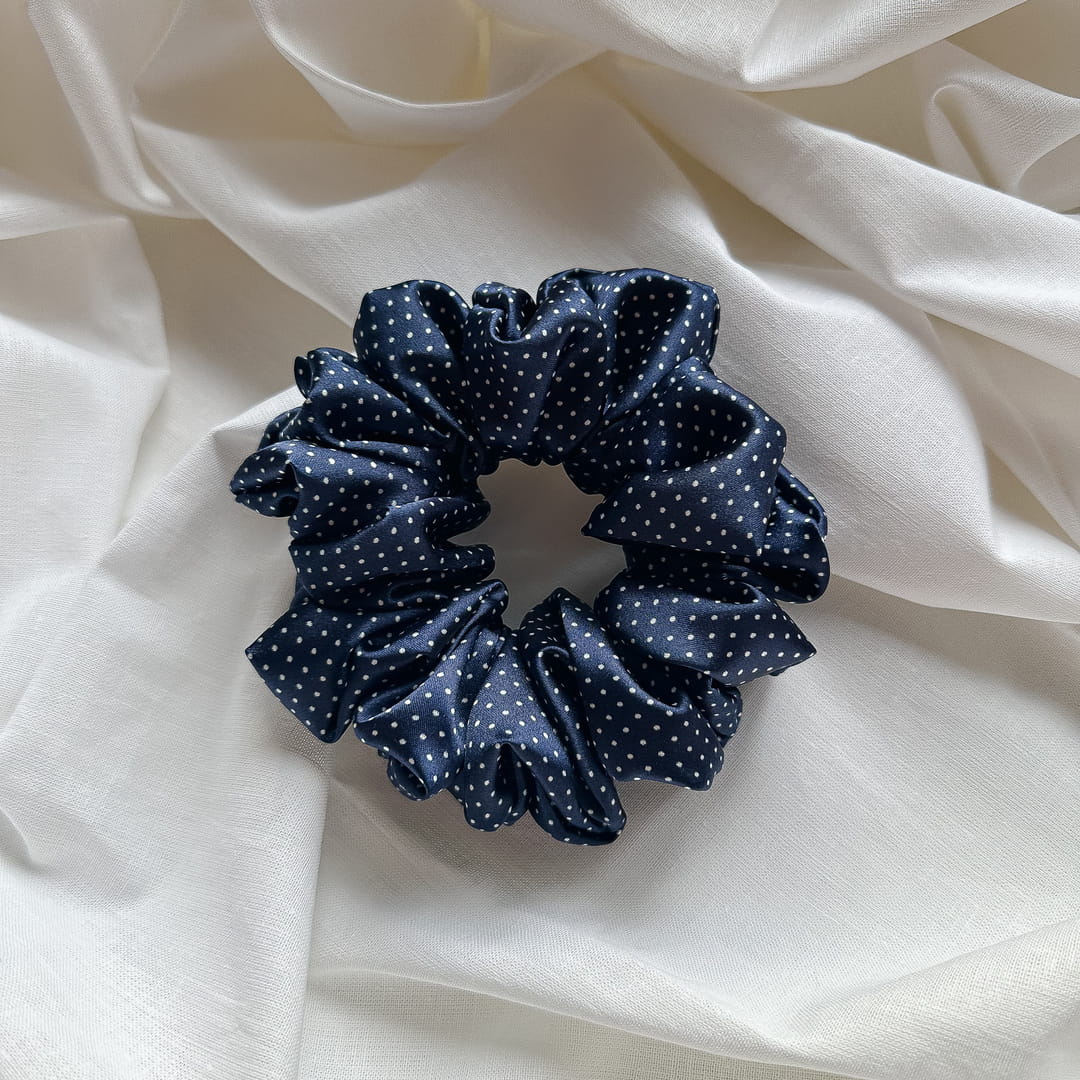 Gumka do włosów scrunchie satynowa Mini Kropki Granatowa M