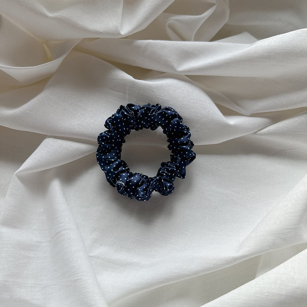 Gumka do włosów scrunchie satynowa Mini Kropki Granatowa S