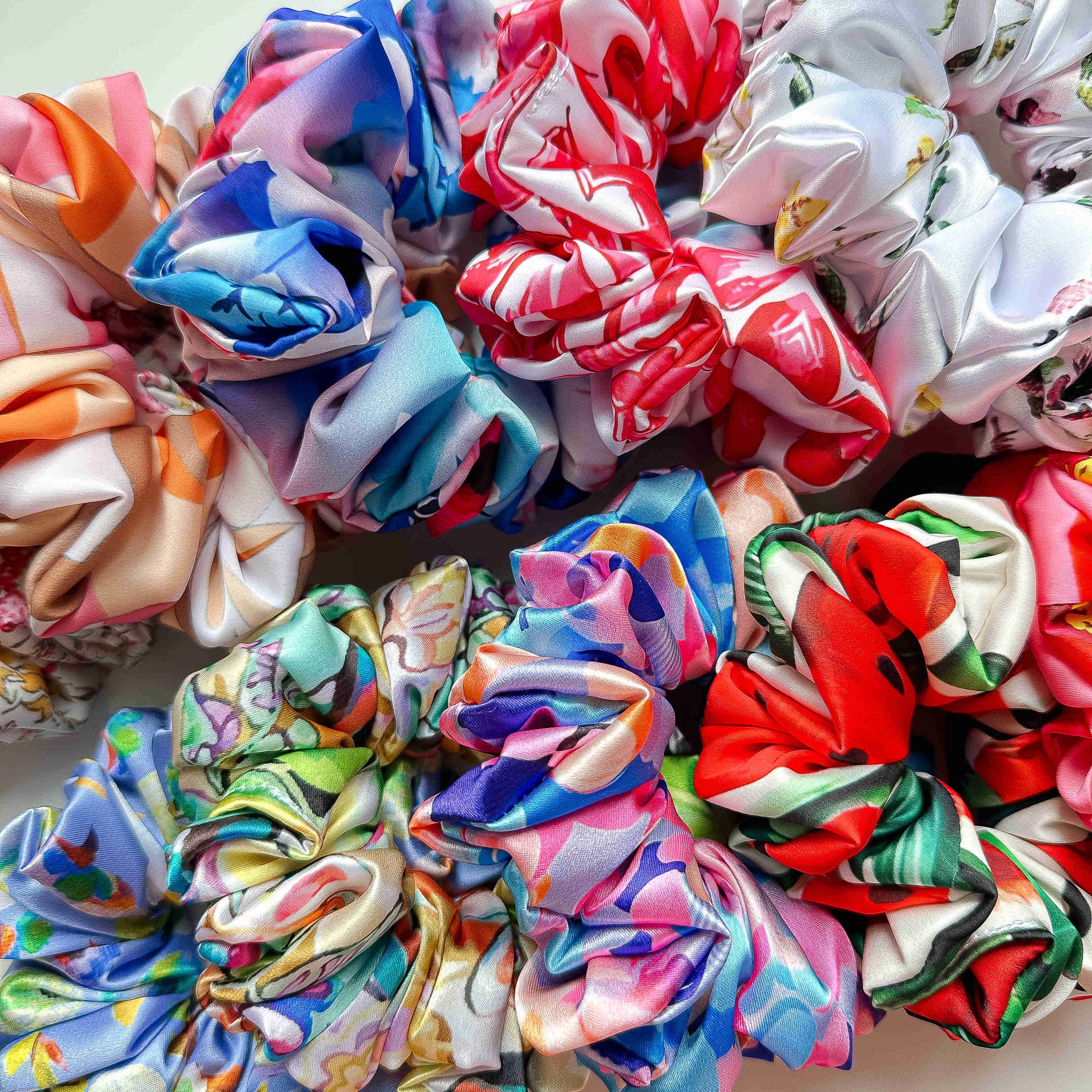 Nasze scrunchie są idealne dla osób zarówno z cienkimi, jak i gęstymi włosami, spośród 5 rozmiarów scrunchie - sugeruj się ilością użytego materiału ozdobnego (gumka użyta do scrunchie jest tej samej długości)