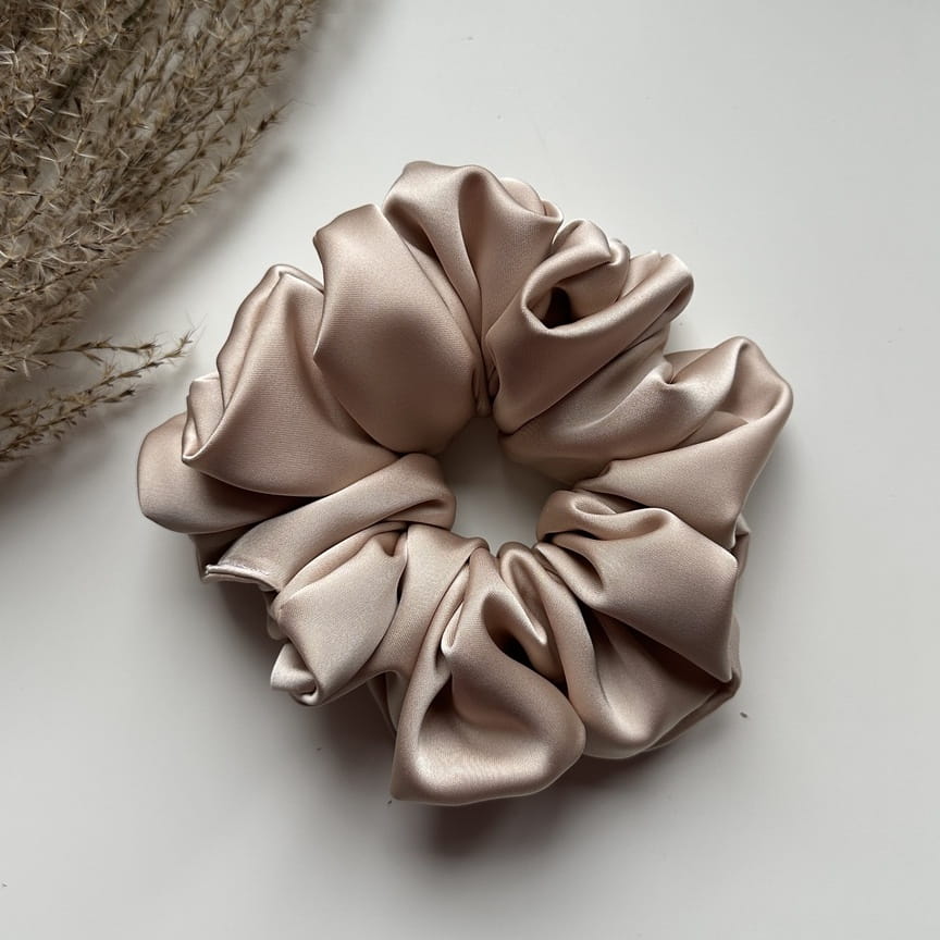 Gumka do włosów scrunchie z jedwabiem Beżowa Premium L