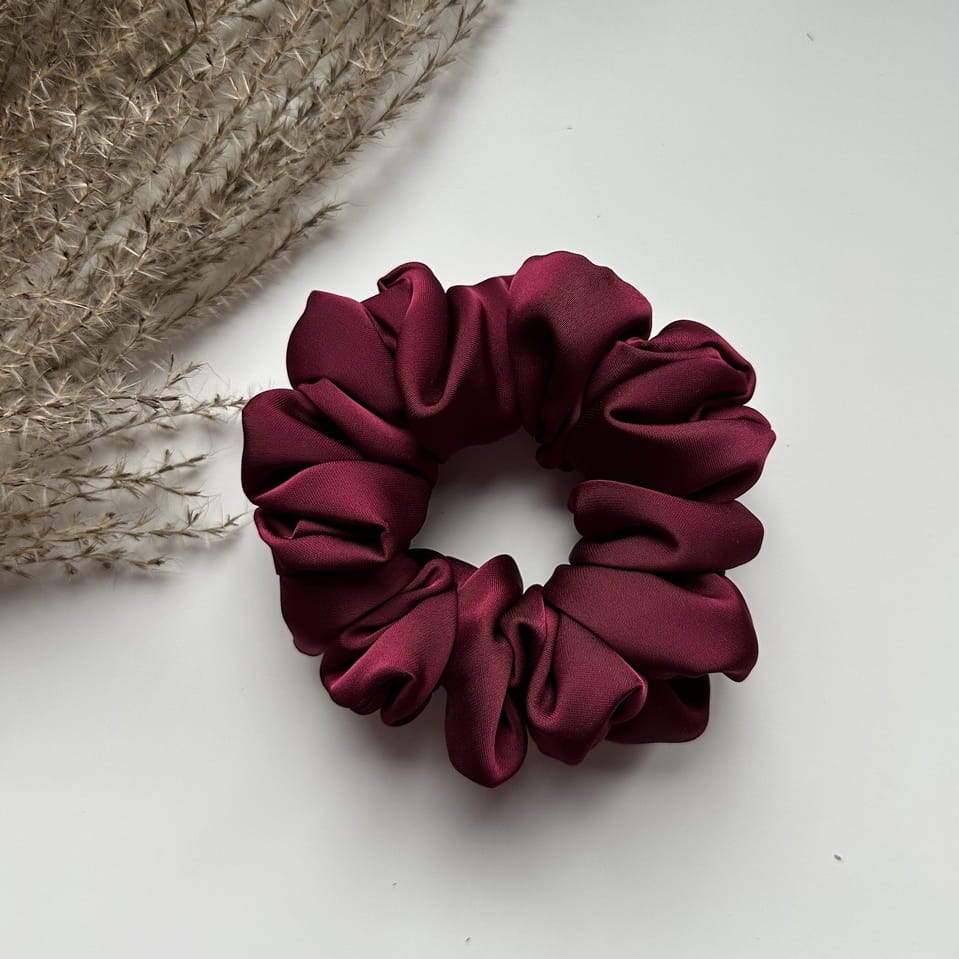 Gumka do włosów scrunchie z jedwabiem Bordo Premium M