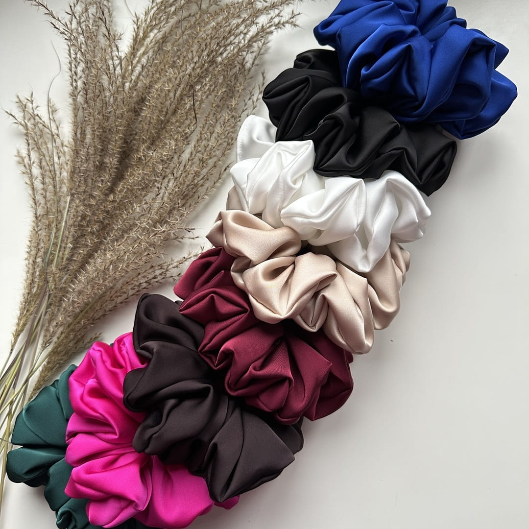 Nasze scrunchie są idealne dla osób zarówno z cienkimi, jak i gęstymi włosami, spośród 5 rozmiarów scrunchie - sugeruj się ilością użytego materiału ozdobnego (gumka użyta do scrunchie jest tej samej długości)
