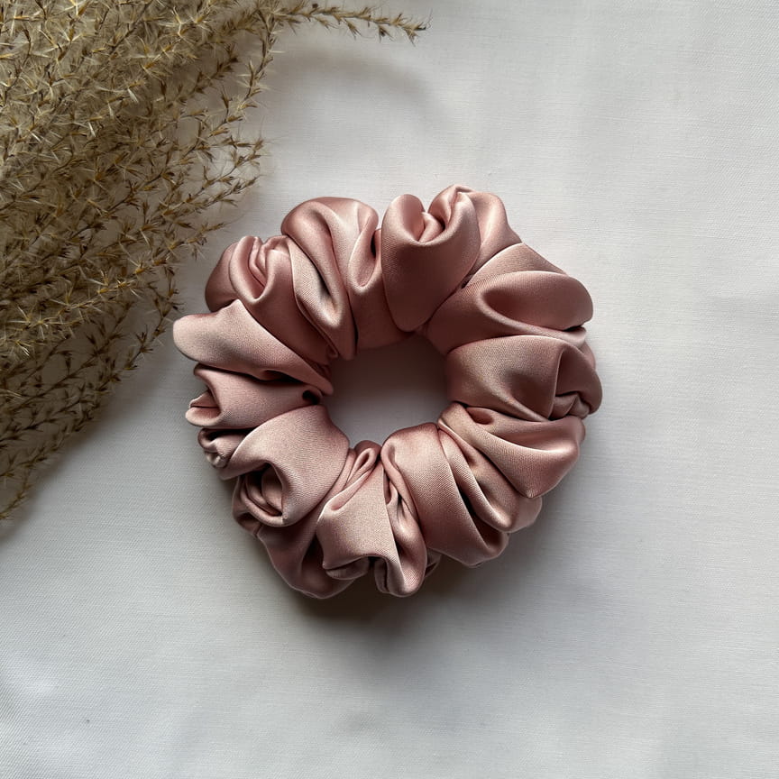Gumka do włosów scrunchie z jedwabiem Brudny Róż Premium M