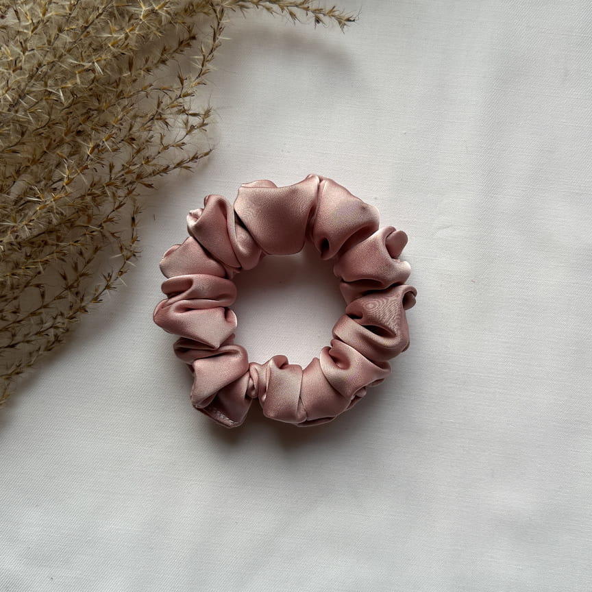 Gumka do włosów scrunchie z jedwabiem Brudny Róż Premium S