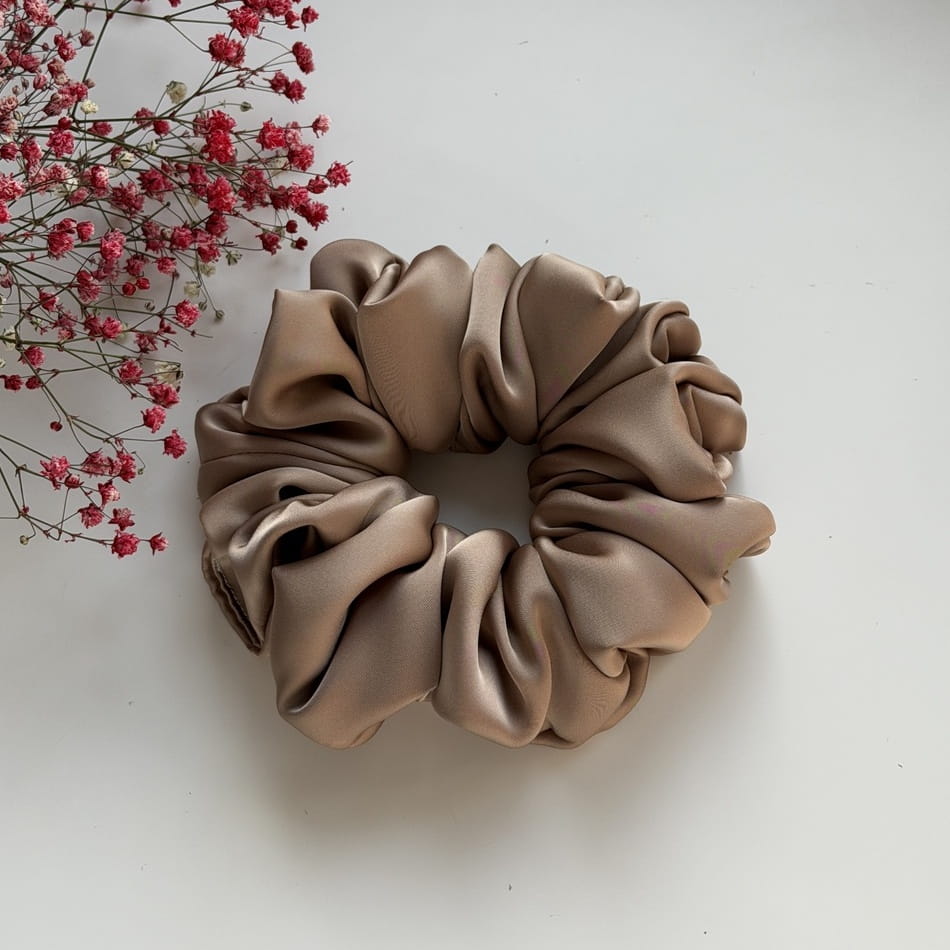Gumka do włosów scrunchie z jedwabiem Cappuccino Premium L
