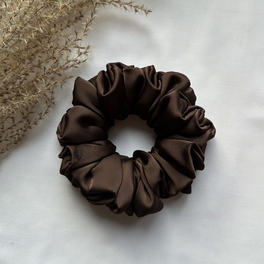 Gumka do włosów scrunchie z jedwabiem Ciemna Czekolada Premium M
