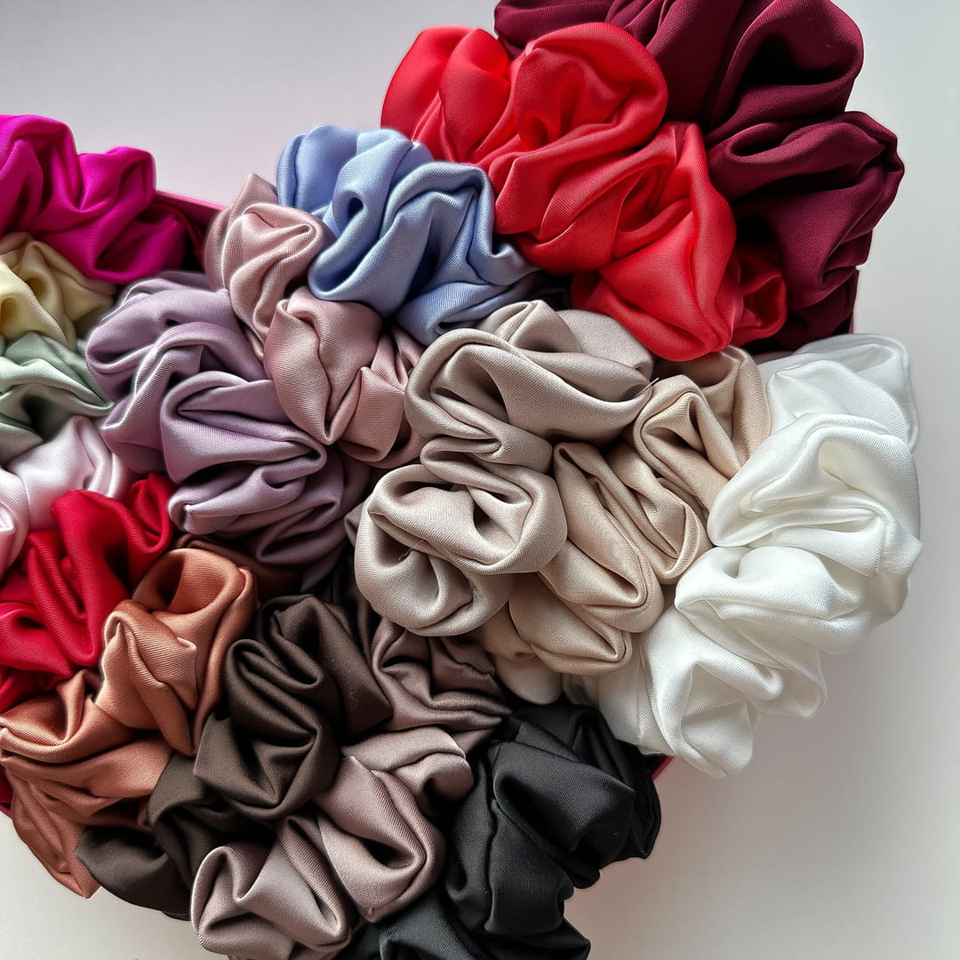 Nasze scrunchie są idealne dla osób zarówno z cienkimi, jak i gęstymi włosami, spośród 5 rozmiarów scrunchie - sugeruj się ilością użytego materiału ozdobnego (gumka użyta do scrunchie jest tej samej długości)
