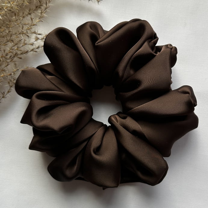 Gumka do włosów scrunchie z jedwabiem Ciemna Czekolada Premium XL