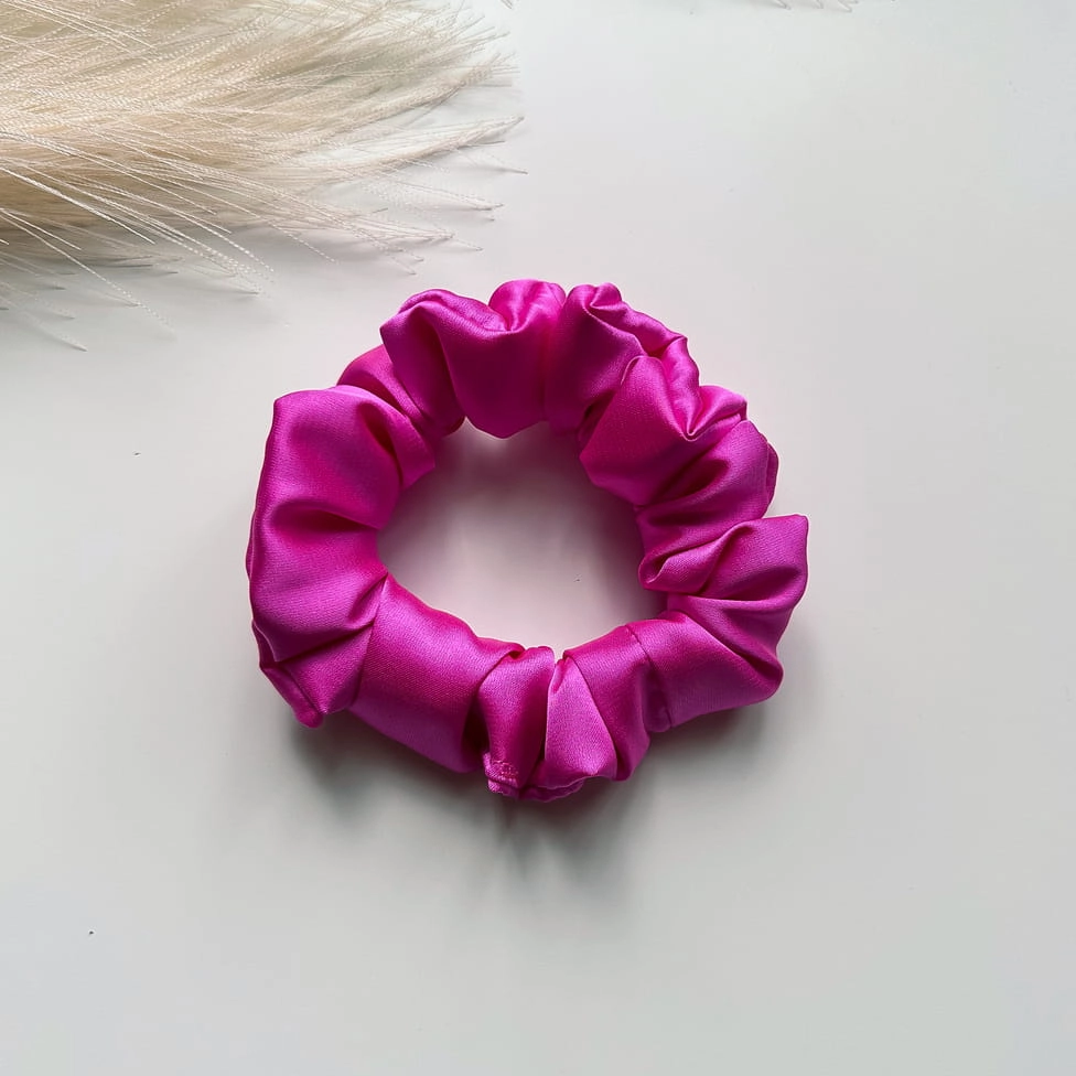 Gumka do włosów scrunchie z jedwabiem Cukierkowa Fuksja S