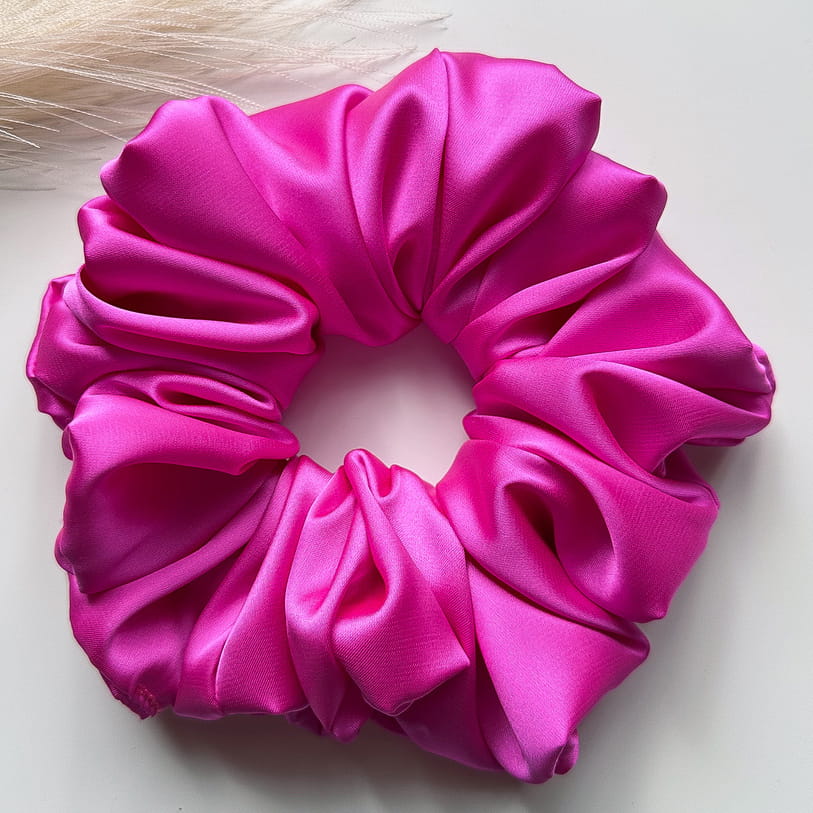 Gumka do włosów scrunchie z jedwabiem Cukierkowa Fuksja XL