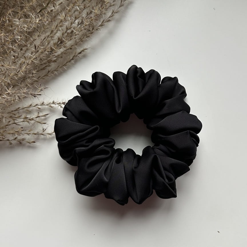 Gumka do włosów scrunchie z jedwabiem Czarna Premium M