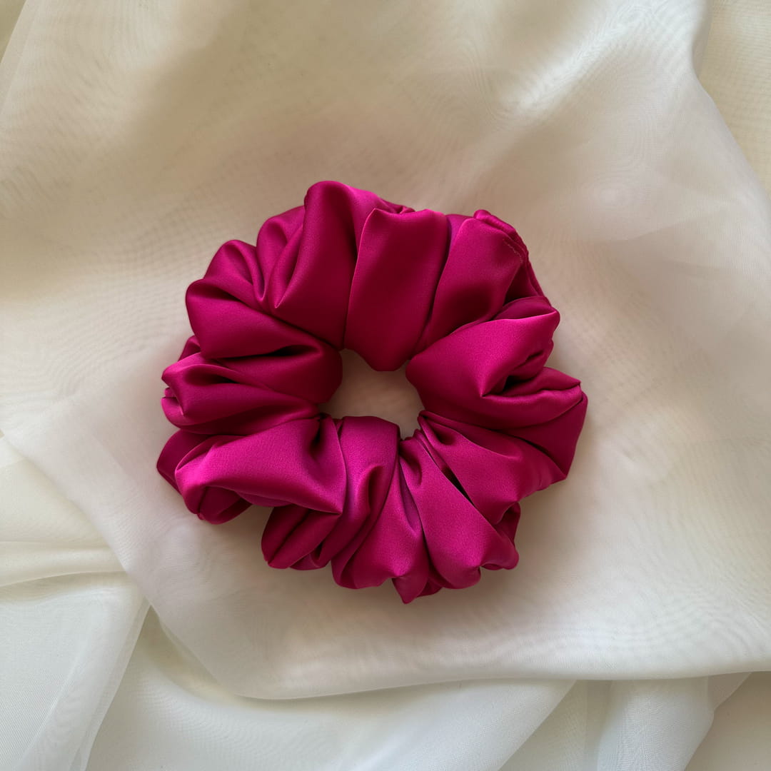 Gumka do włosów scrunchie z jedwabiem Fuksja L