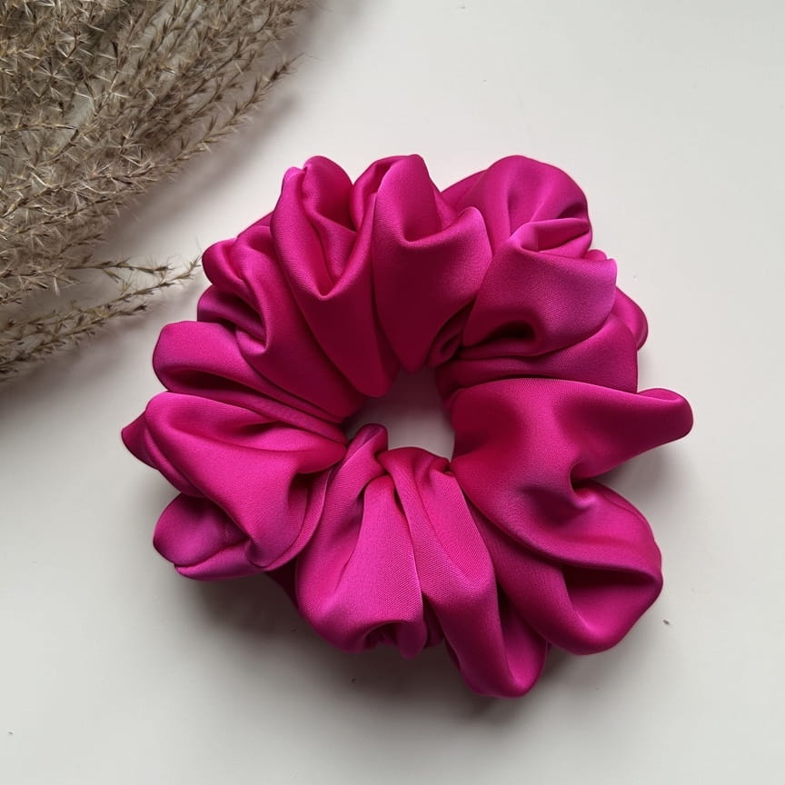 Gumka do włosów scrunchie z jedwabiem Fuksja Premium L