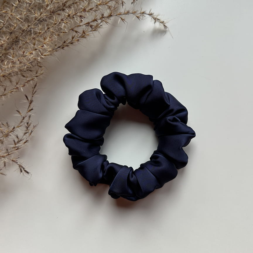 Gumka do włosów scrunchie z jedwabiem Granatowa Premium S