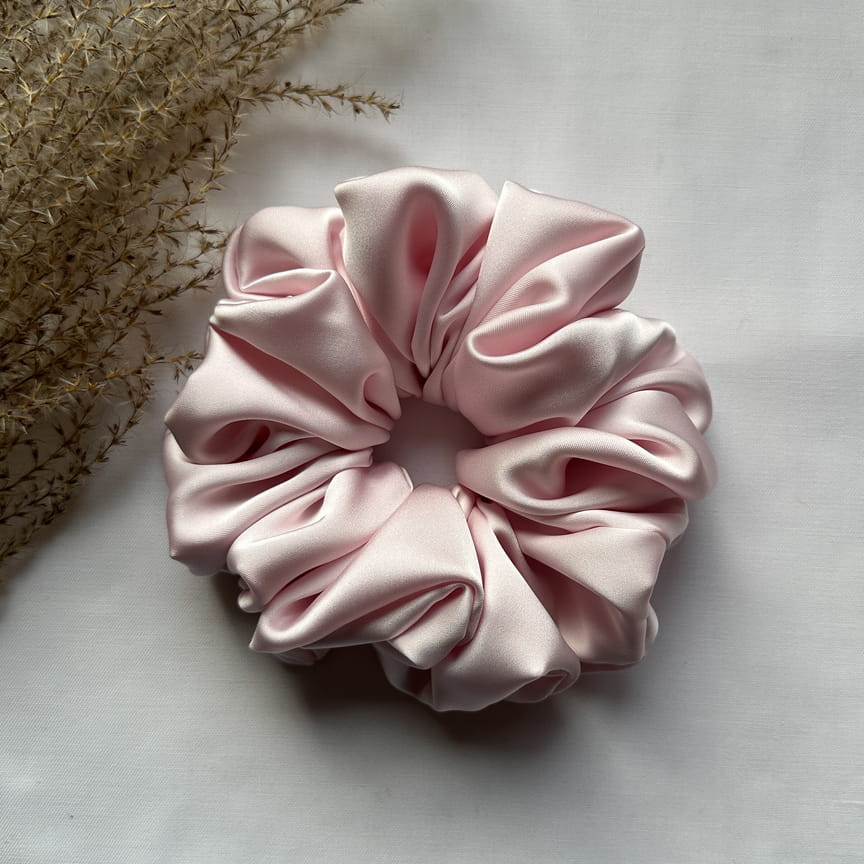 Gumka do włosów scrunchie z jedwabiem Jasny Róż Premium L