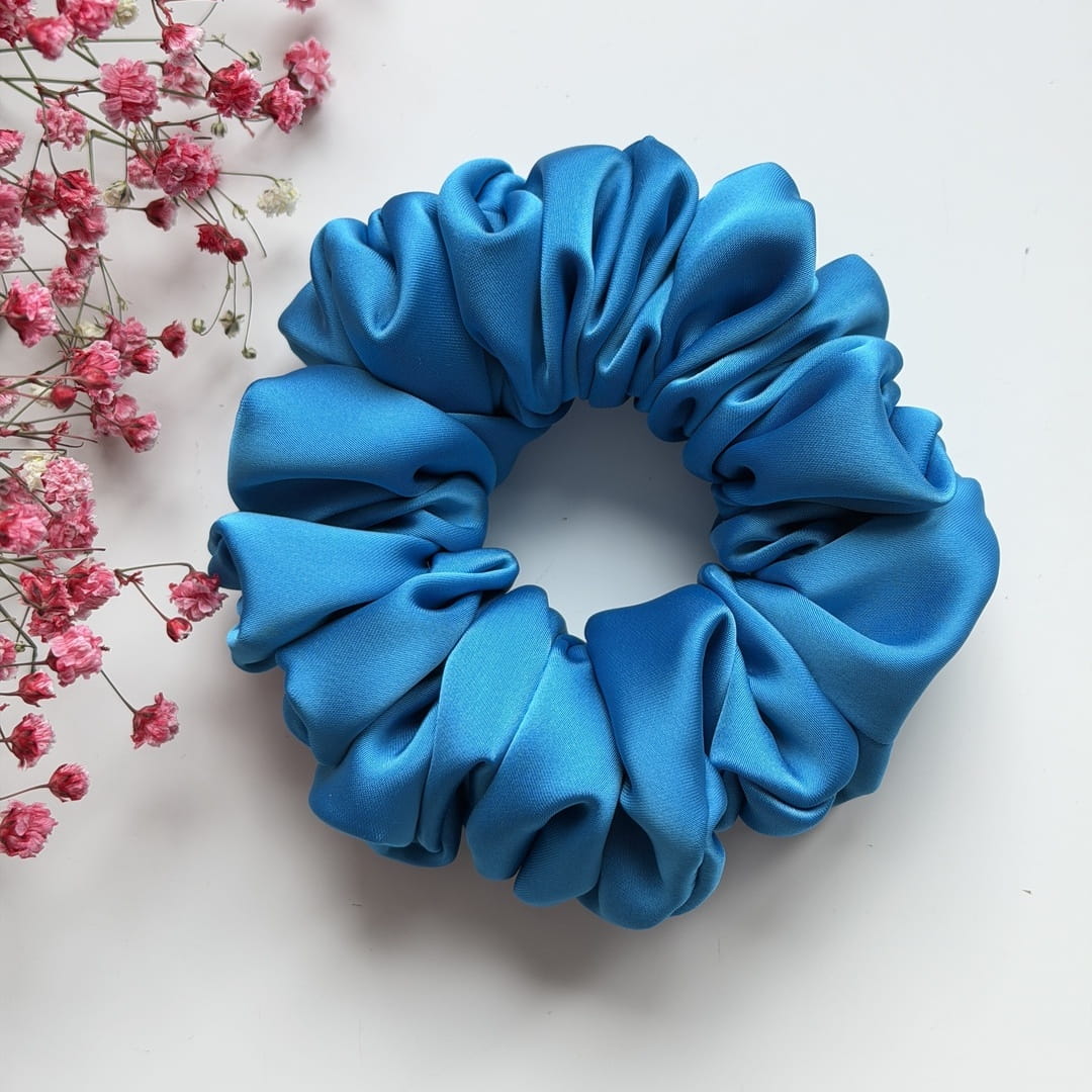 Gumka do włosów scrunchie z jedwabiem Lazur Premium M