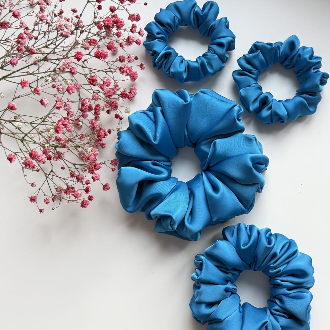 Nasze scrunchie są idealne dla osób zarówno z cienkimi, jak i gęstymi włosami, spośród 5 rozmiarów scrunchie - sugeruj się ilością użytego materiału ozdobnego (gumka użyta do scrunchie jest tej samej długości)