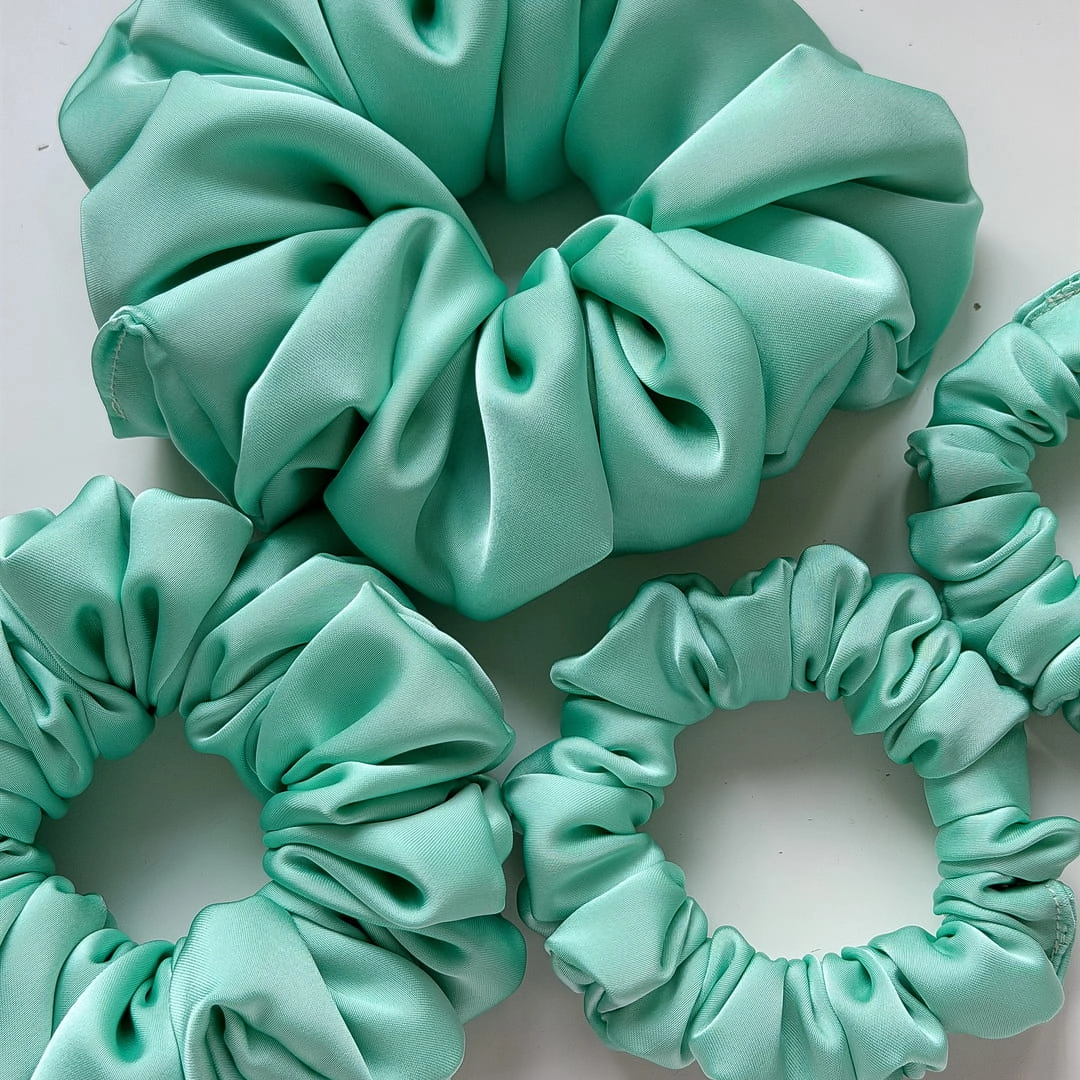 Gumka do włosów scrunchie z jedwabiem Miętowa Premium S
