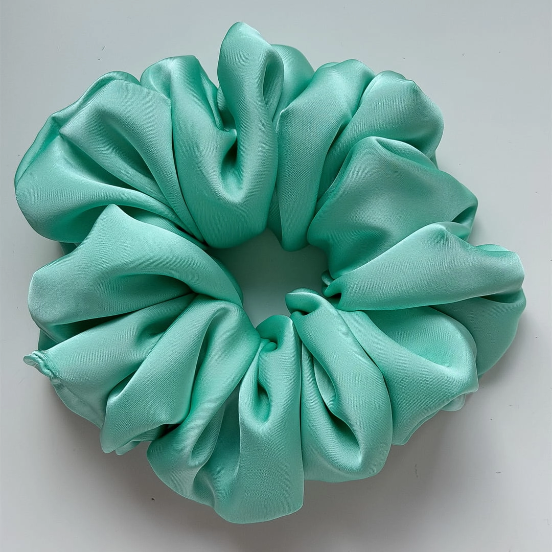 Gumka do włosów scrunchie z jedwabiem Miętowa Premium XL