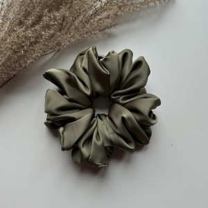 Gumka do włosów scrunchie z jedwabiem Oliwka Premium L