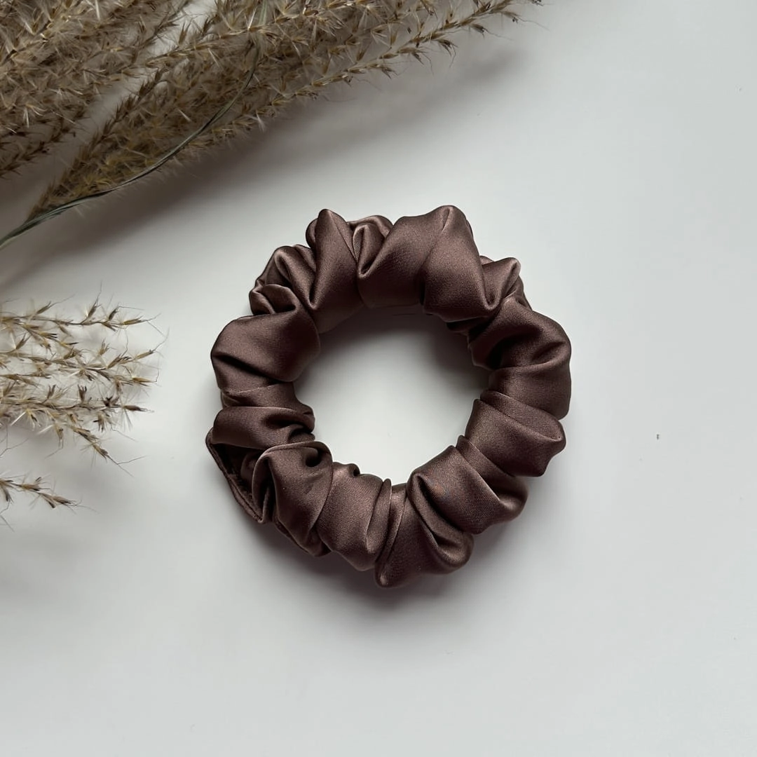 Gumka do włosów scrunchie z jedwabiem Orzechowa S