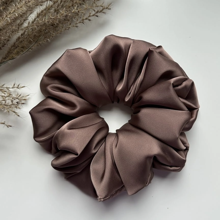 Gumka do włosów scrunchie z jedwabiem Orzechowa XL