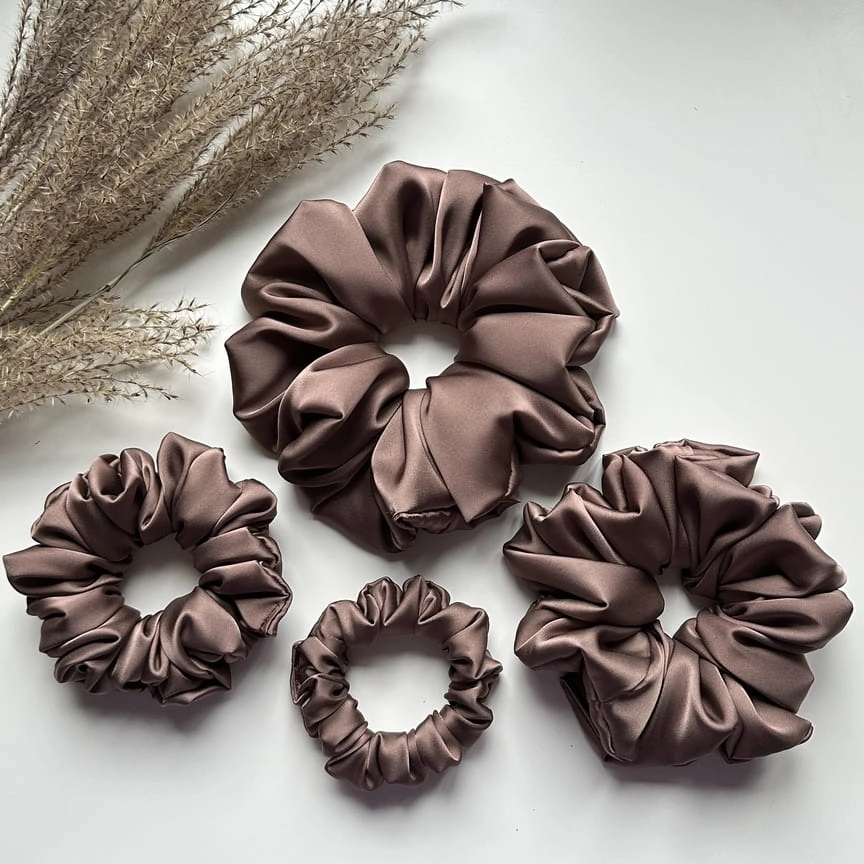 Nasze scrunchie są idealne dla osób zarówno z cienkimi, jak i gęstymi włosami, spośród 5 rozmiarów scrunchie - sugeruj się ilością użytego materiału ozdobnego (gumka użyta do scrunchie jest tej samej długości)