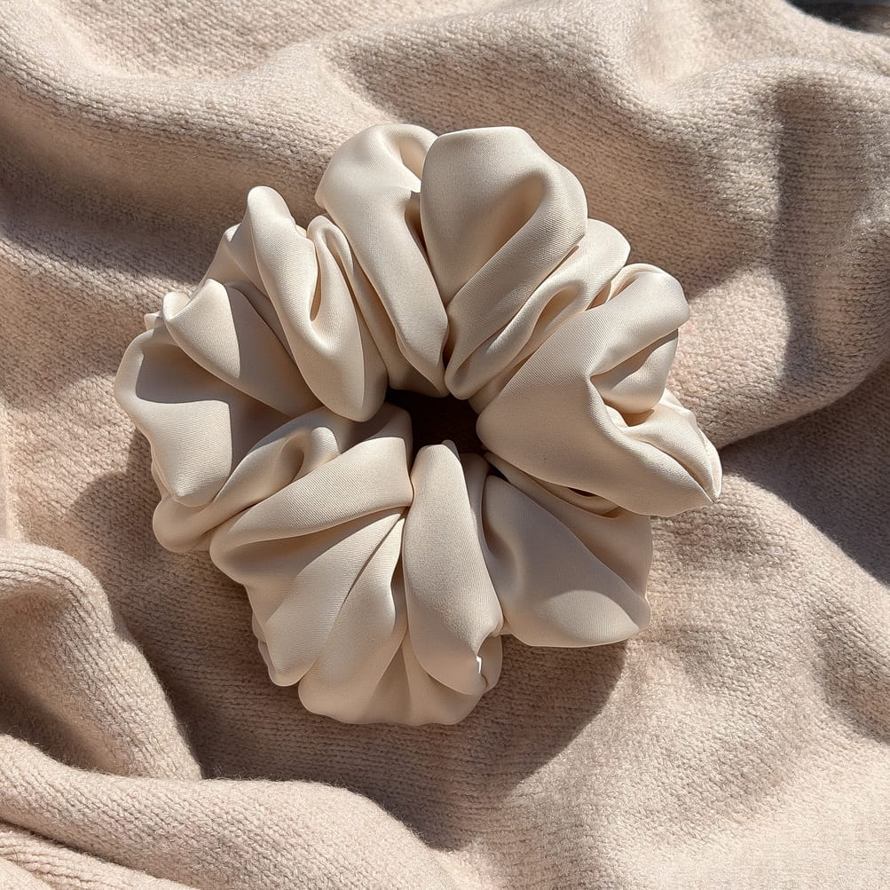 Gumka do włosów scrunchie z jedwabiem Śmietanka Premium L