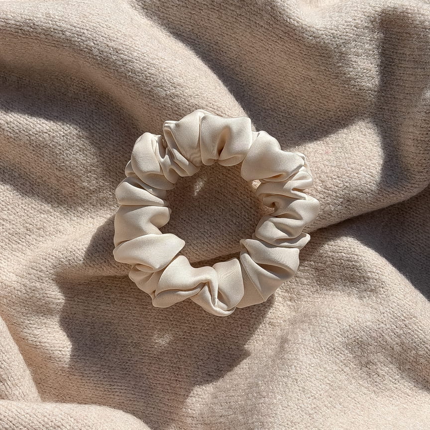 Gumka do włosów scrunchie z jedwabiem Śmietanka Premium S