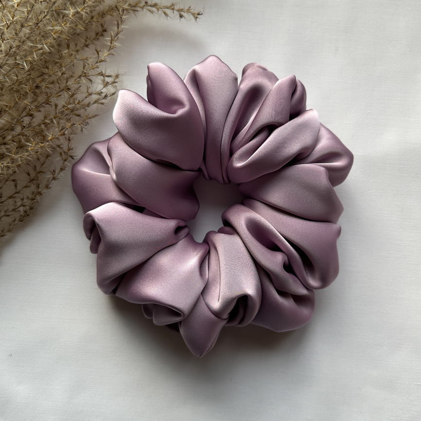 Gumka do włosów scrunchie z jedwabiem Spokojny Fiolet Premium L